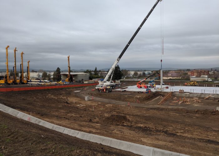 The BCM team has been working on a FedEx Freight Facility in Livermore, CA. This project started on August 27, 2019 and is projected to be completed around December of 2020. This project is a combination of pre-engineered metal building and precast concrete panel tilt-up. The building footprint is 54,450 square feet. The parking and truck lanes surrounding the building are all paved concrete which totals about 384,000 square feet. The project also includes a fueling station, and a small guard house at the main entrance gate.